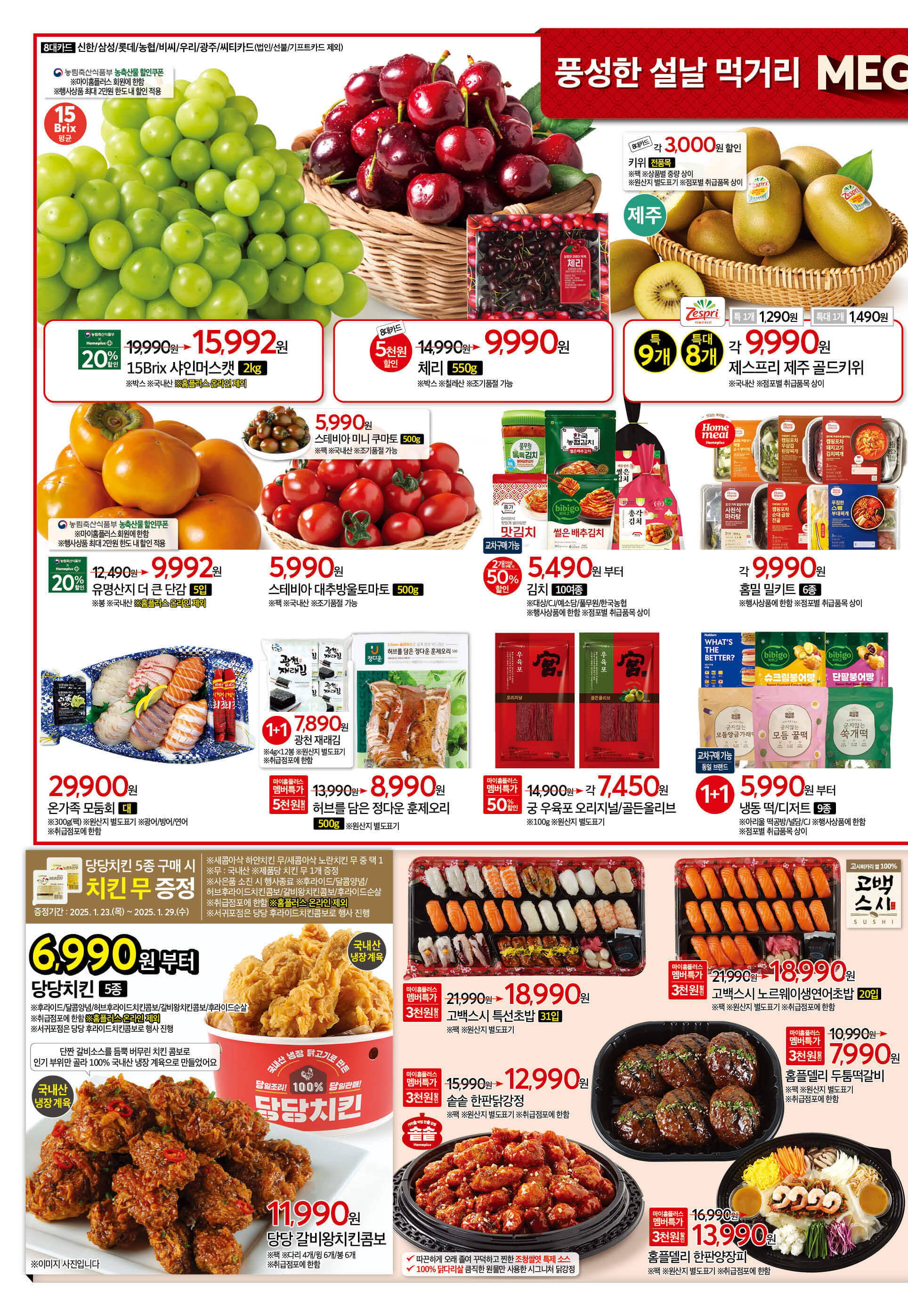 홈플러스 전단행사에는 안 보이지만 멤버십 회원들에게 1kg짜리 당근 1봉을 50% 할인된 3,990원에 선보이고, 육류뿐만 아니라 과일, 전류, 떡국떡 등 다양한 명절 필수품을 특별 가격에 선보이고 있어요.