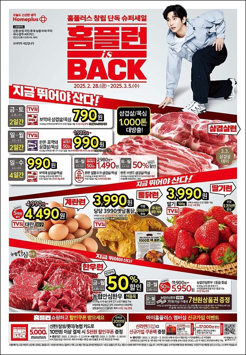 매년 이맘때쯤이면 창립기념 행사로 진행되는 2025 홈플러스 홈플런은 2월 28일(금)부터 3월 12일(수)까지 진행되지만 삼겹살 및 목심이나 한우 할인은 행사 초반에만 진행되니까 유의하세요.