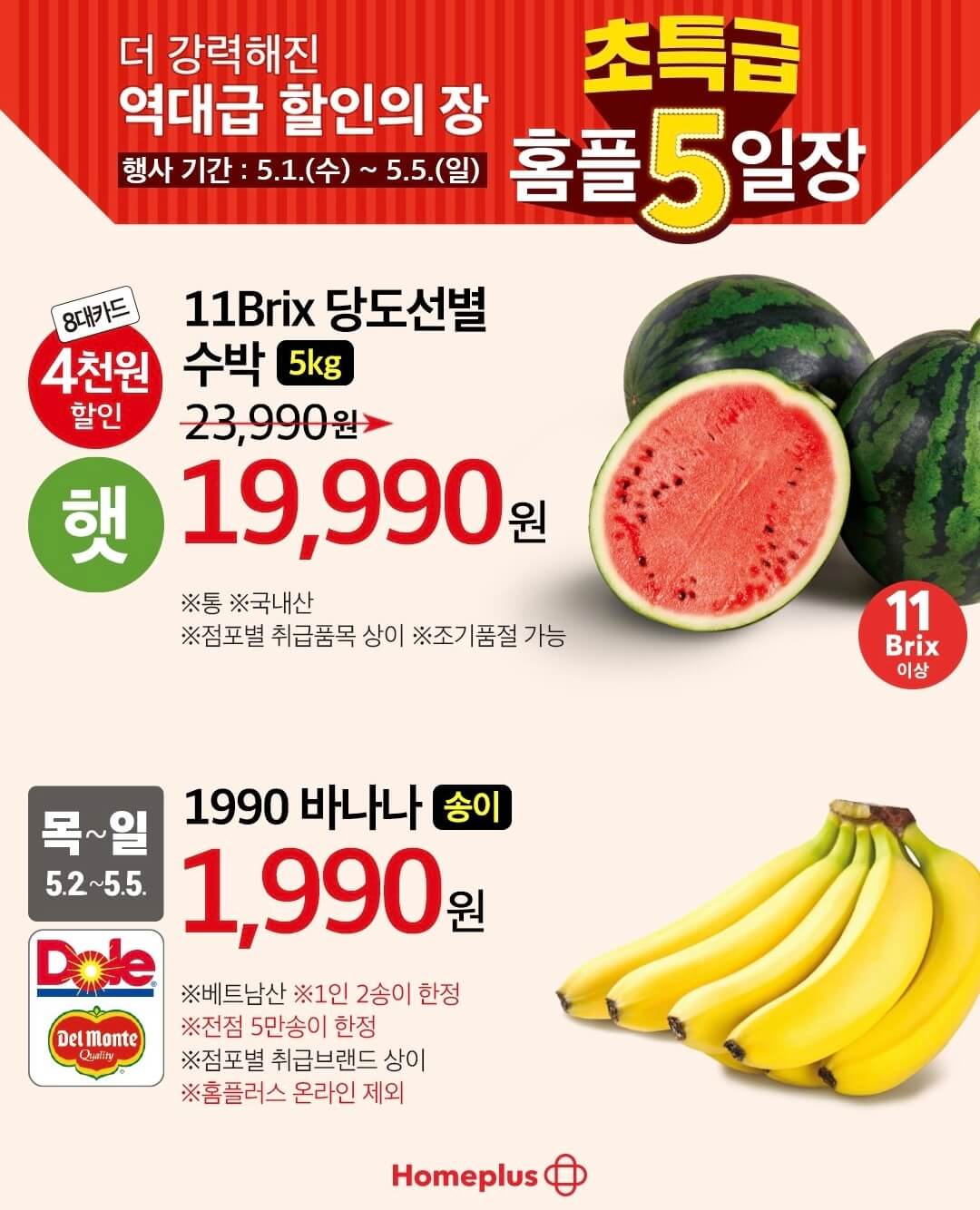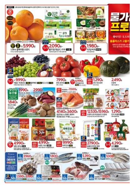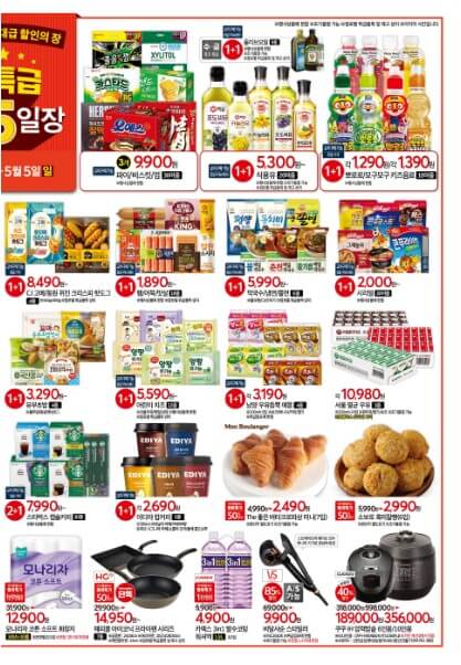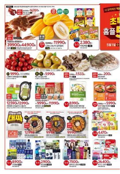 홈플러스는 5월 1일인 어제부터 5일까지 초특급 홈플 5일장을 연다고 해요. 이는 우선적으로 진행하는 홈플러스 5월행사로 대표인기 먹거리를 할인가로 선보이는데요~ 대표인기먹거리뿐만 아니라 어린이날을 맞이한 키즈페스타도 동시에 진행하니까 홈플러스 인터넷쇼핑몰 5월행사 전단을 확인하고 5일장 장보기 지원 쿠폰도 받으세요.