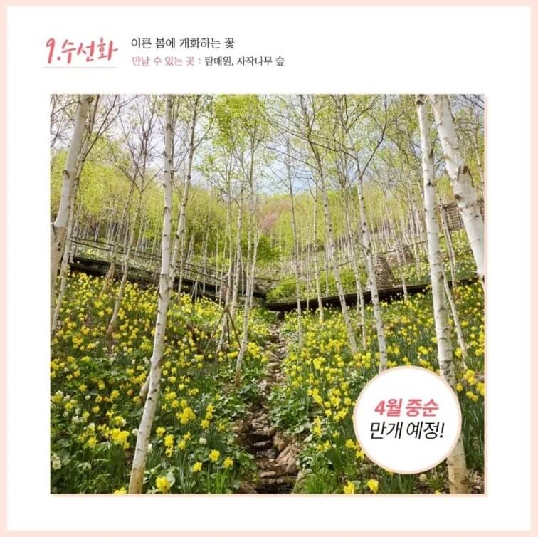 그렇기 때문에 이번 벚꽃시즌 화담숲 예약하기를 놓쳤다면 노란 수선화가 피는 시즌에 방문해봐도 좋을 것 같으니까 수선화 시즌도 노려보세요.