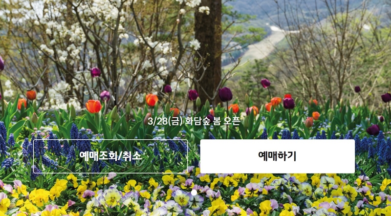 봄시즌 화담숲은 3월 28일(금)부터 오픈되기 때문에 3월 12일(수) 오후 1시에 온라인 예매가 시작되면 3월 28일(금)부터 날짜를 선택해서 예약하면 돼요. 아무래도 벚꽃 절정시기는 4월 첫째 주로 예상되기 때문에 4월 첫째 주 주말 예약이 제일 힘들 것으로 예상되네요.