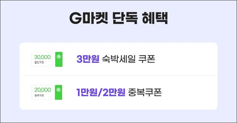 G마켓에서는 기본적으로 제공하는 3만원 쿠폰 외에 중복으로 사용할 수 있는 1만 원 + 2만 원 쿠폰도 발급하고 있는데요~ 여기에 렌터카 5% 할인쿠폰도 제공하고 있어요.