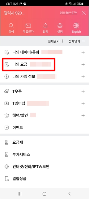 T월드 어플에서 차단하고 조정하기