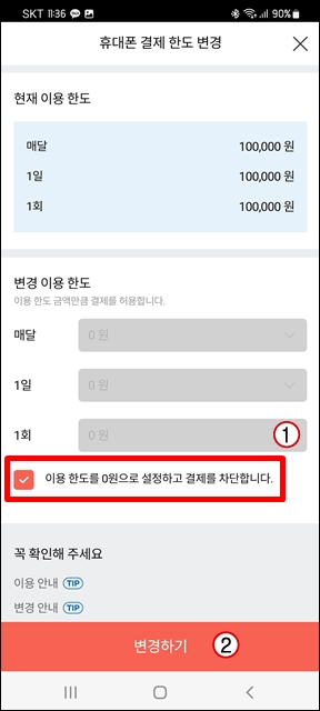 SKT 핸드폰 소액결제 차단 및 한도 조정 하는 방법